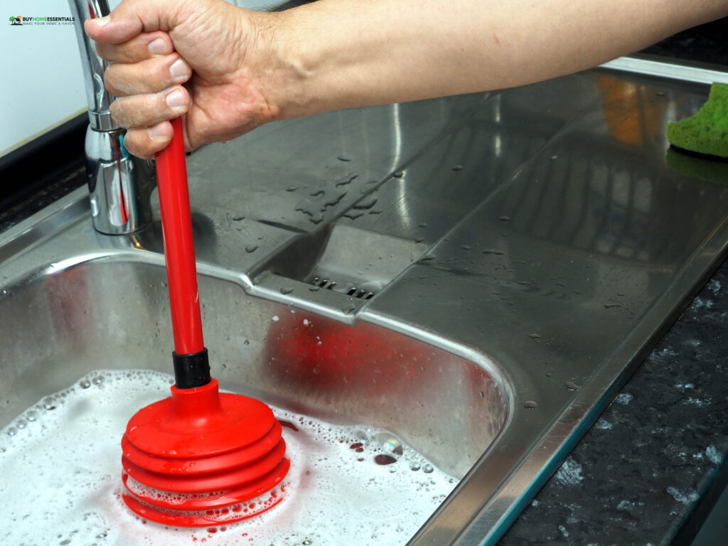 Using a plunger, you can usually clear minor clogs in your kitchen sink easily and quickly. Here’s a step-by-step guide on how to use a plunger to unclog your sink: